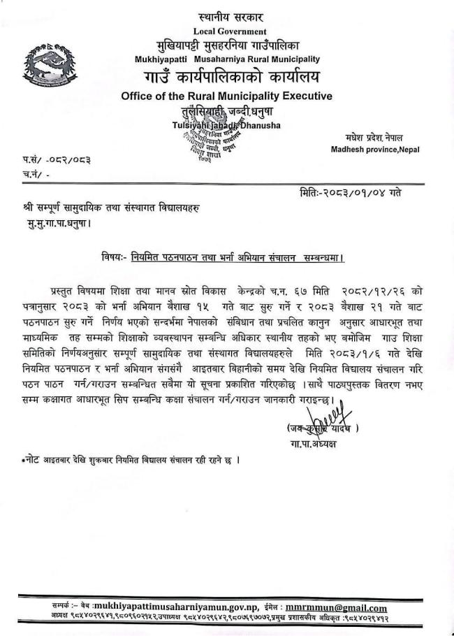 - नियमित कार्यालय संचालन सम्बन्धमा