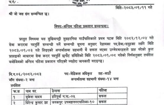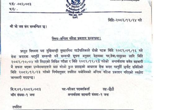 - अन्तिम नतिजा प्रकाशन सम्बन्धमा