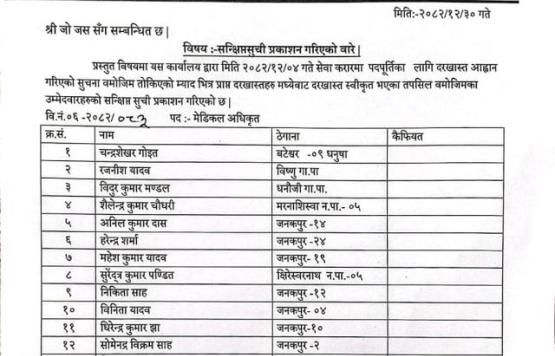 - संक्षिप्त सूची प्रकाशन र परिक्षा तालिका निर्धारण सम्बन्धमा