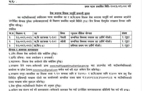 - सेवा करारमा पद पूर्ति सम्बन्धी सूचना