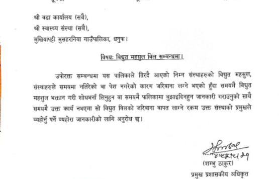 - नियमित कार्यालय संचालन सम्बन्धमा