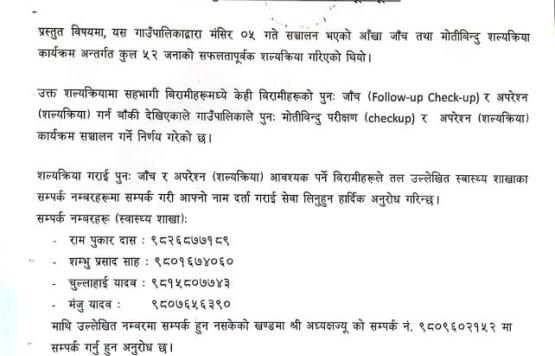 - गाउँसभा अधिबेशन आहावान गरिएको सम्बन्धमा