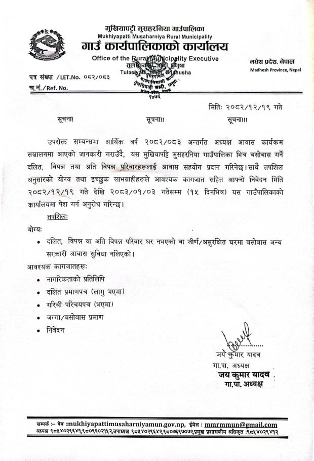 आवास कार्यक्रम सञ्चालन सम्बन्धमा।