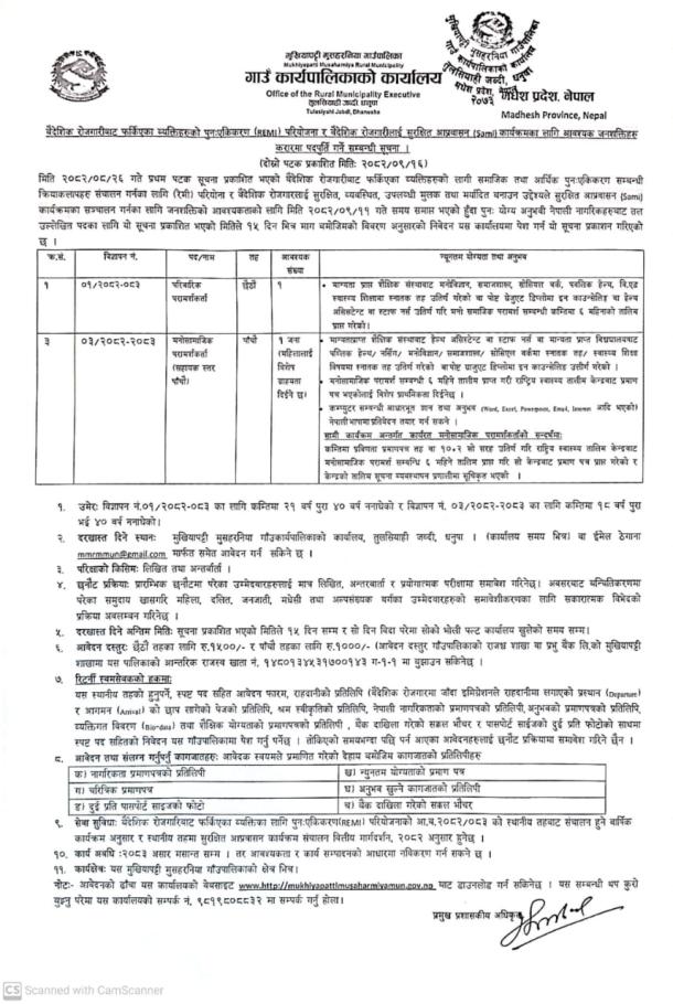 रेमी र सामी परियोजनाको पदपूर्ति सम्बन्धी सूचना ।